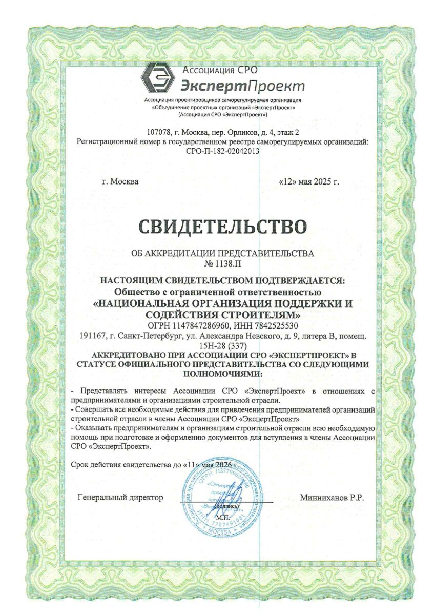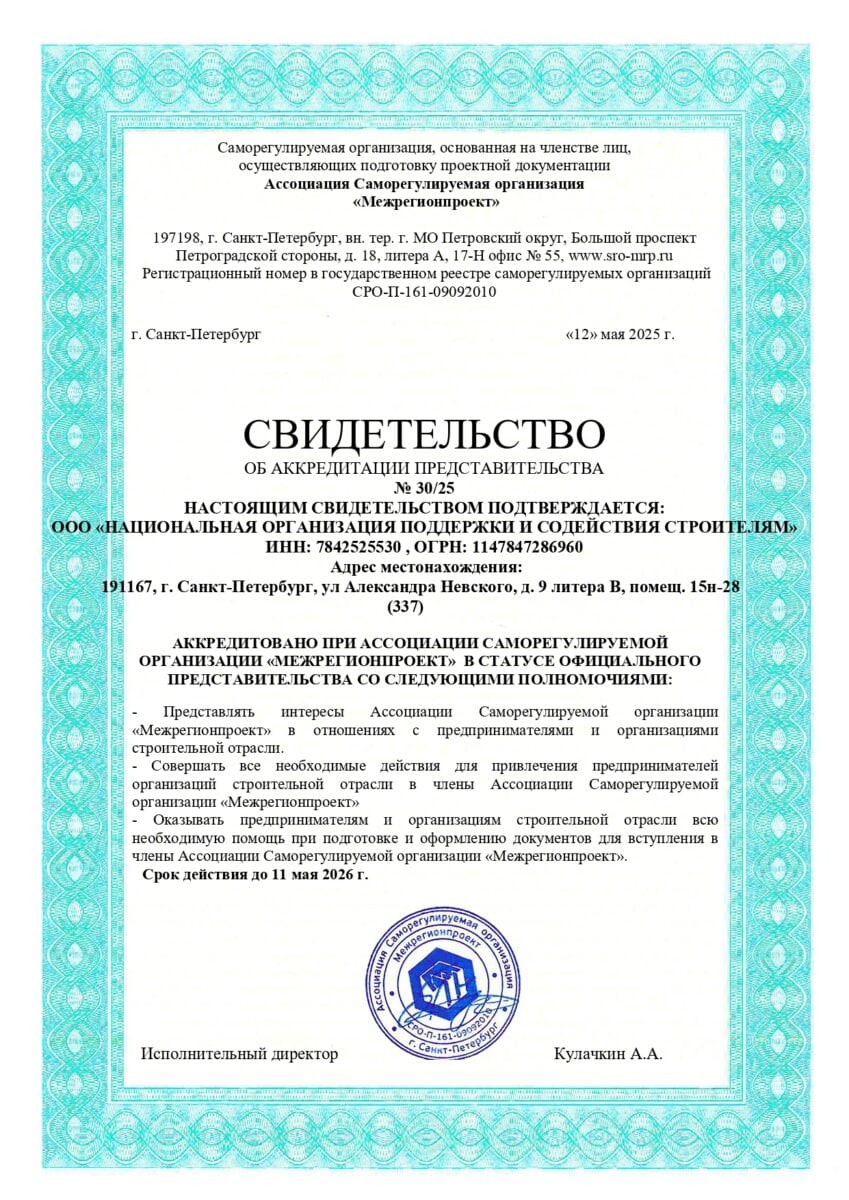 Организация «НОПСС» является аккредитованным представителем крупнейших СРО России с 2014 года. Согласно федеральному закону N 372-ФЗ, у членов СРО в штате должны быть не менее двух специалистов, сведения о которых включены в национальный реестр, соответствующих следующим требованиям: